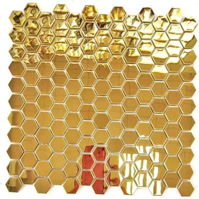 অভ্যন্তরীণ ডিজাইনের জন্য হেক্সাগন গোল্ড কালার স্টেইনলেস স্টীল মোজাইক টাইল