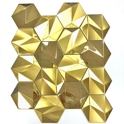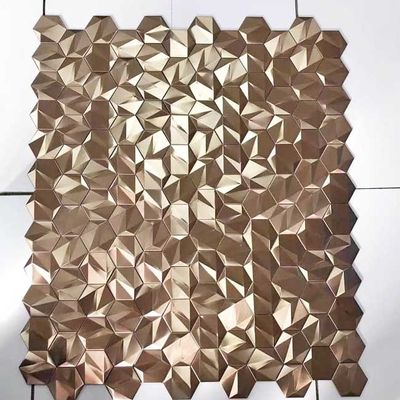 দেয়াল সাজানোর জন্য 3D হেক্সাগন রোজ গোল্ড কালার স্টেইনলেস স্টীল মোজাইক টাইল