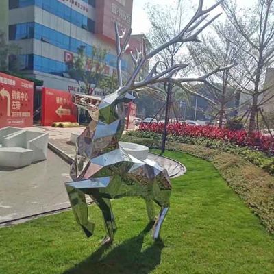 কাস্টম আউটডোর হরিণ মডেলিং শিল্প স্টেইনলেস স্টীল ভাস্কর্য মিরর সমাপ্তি