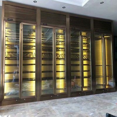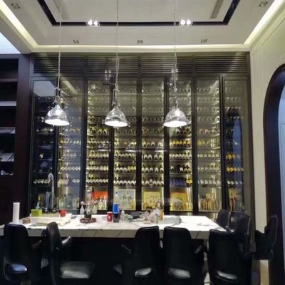 হোটেল সজ্জা কালো ধাতব ফ্রেম আসবাব গ্লাস প্রদর্শনী স্টেইনলেস স্টীল মন্ত্রিসভা ওয়াইন কেস