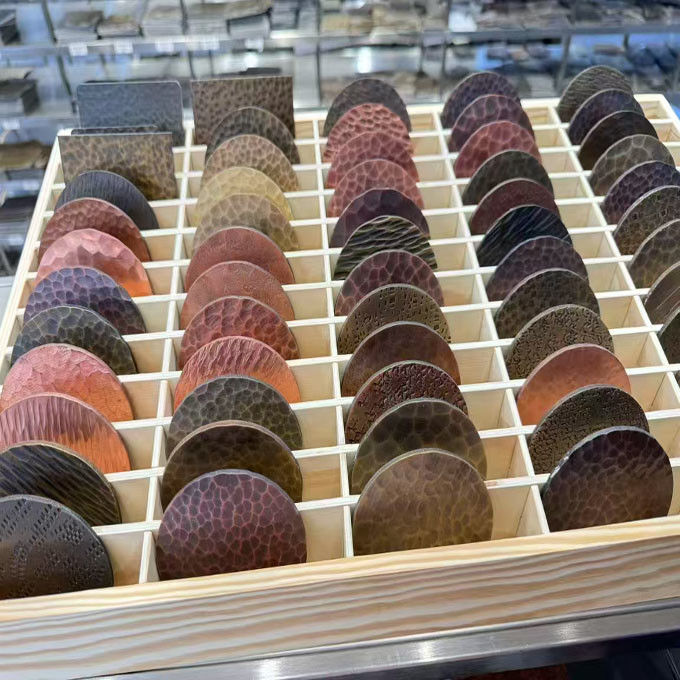 1.ম্যানুয়াল হ্যামারিং: কারিগররা স্টেইনলেস স্টীল প্লেটের পৃষ্ঠকে হস্তমৈথুন করার জন্য মডেলযুক্ত হ্যামার ব্যবহার করে, অসামঞ্জস্যপূর্ণ টেক্সচার তৈরি করে।