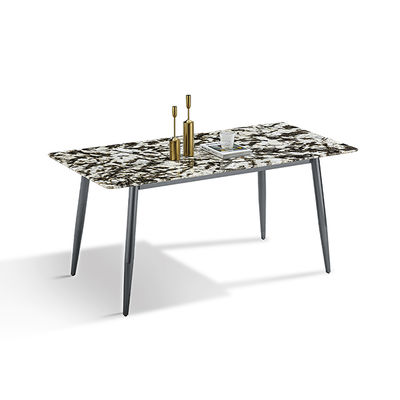 কৃত্রিম পাথরের উপরে স্টাইলিশ পাউডার লেপা স্টিল ডাইনিং টেবিল