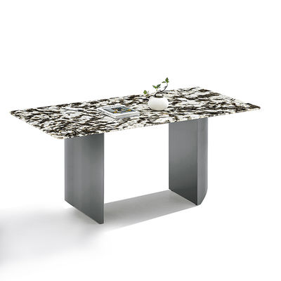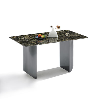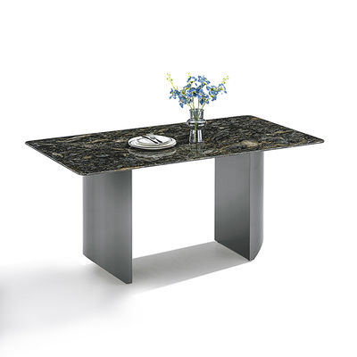 আধুনিক সিন্টার্ড স্টোন টেবিলটপ ব্ল্যাক কালার মিরর স্টেইনলেস স্টিল বেস ডাইনিং টেবিল