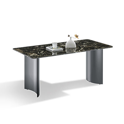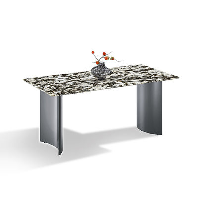 আধুনিক সিন্টার্ড স্টোন টেবিলটপ ডাবল রাউন্ড আর্ক স্টেইনলেস স্টিল টেবিল লেগ