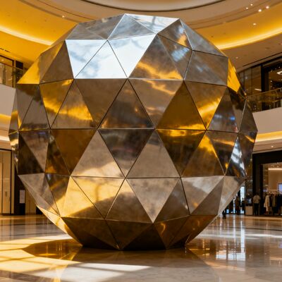 মিরর গোল্ড কালার প্লেটিং টাইটানিয়াম শেপড স্টেইনলেস স্টিল স্কাল্পচার